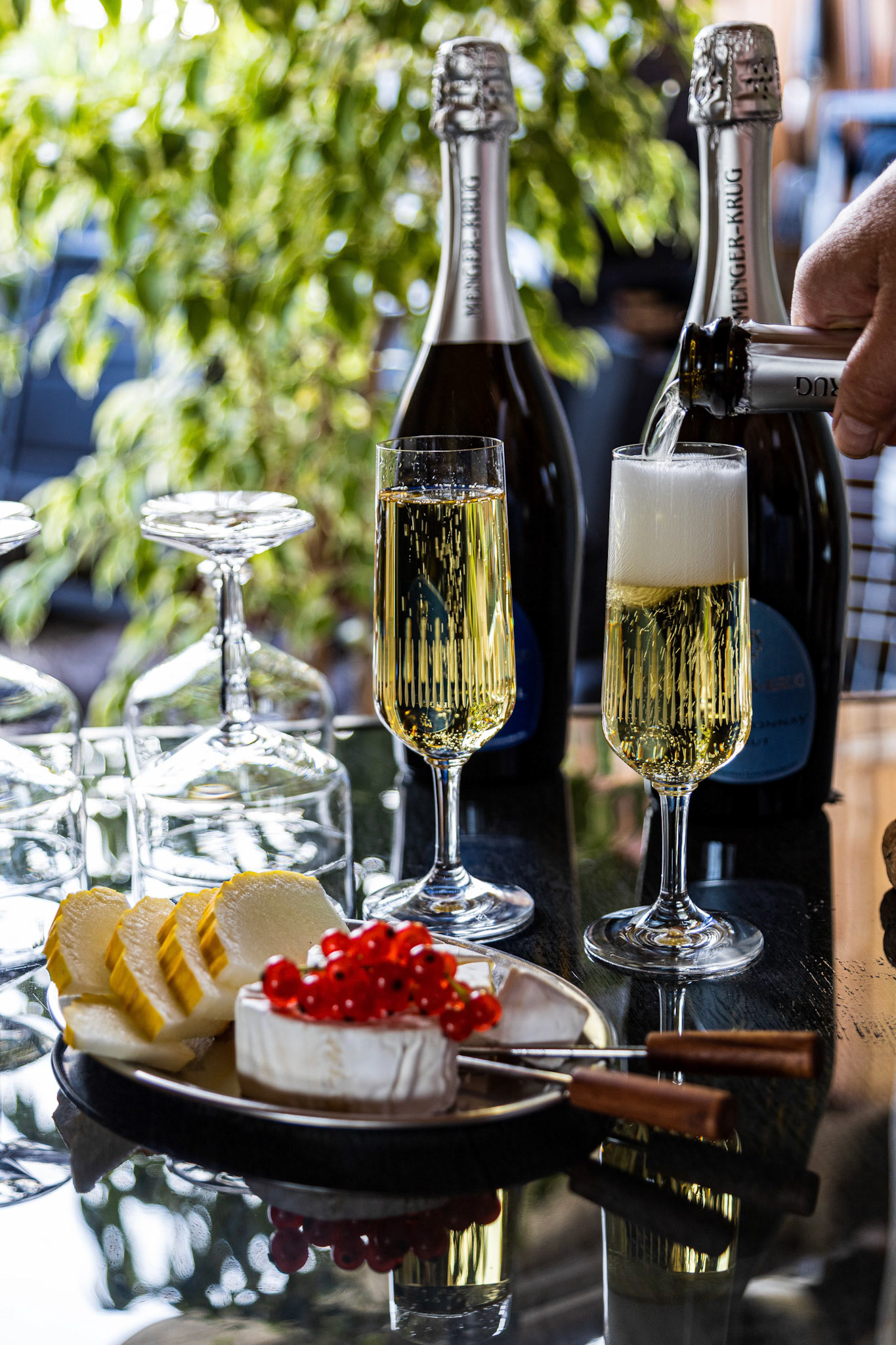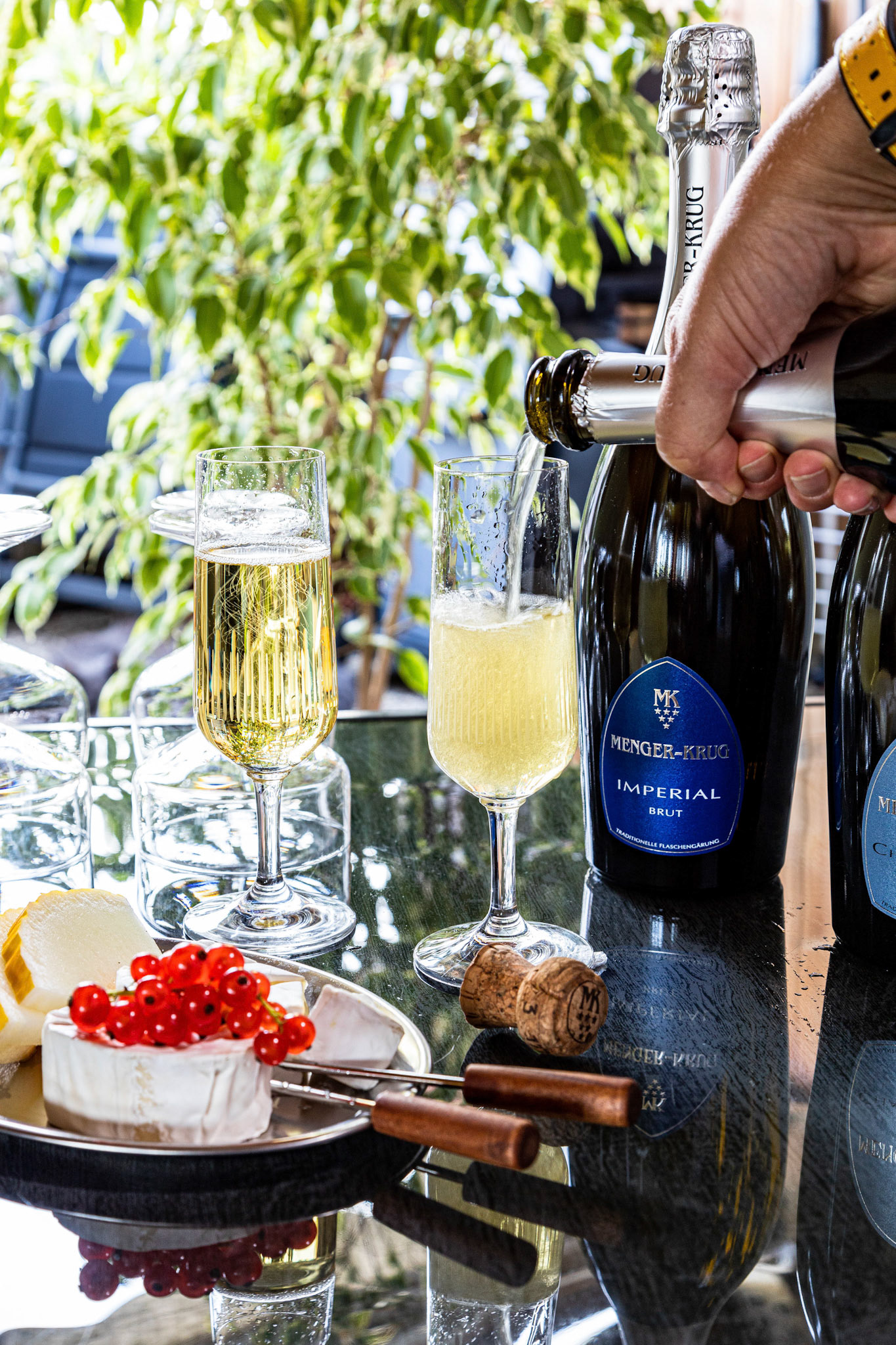 Wine Glass Pink Flowers Decor Background with flying petals , summer time .